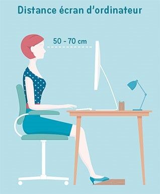 • Distance : positionner l'écran entre 50 et 70 cm du buste, ce qui correspond approximativement à la longueur du bras tendu devant soi.