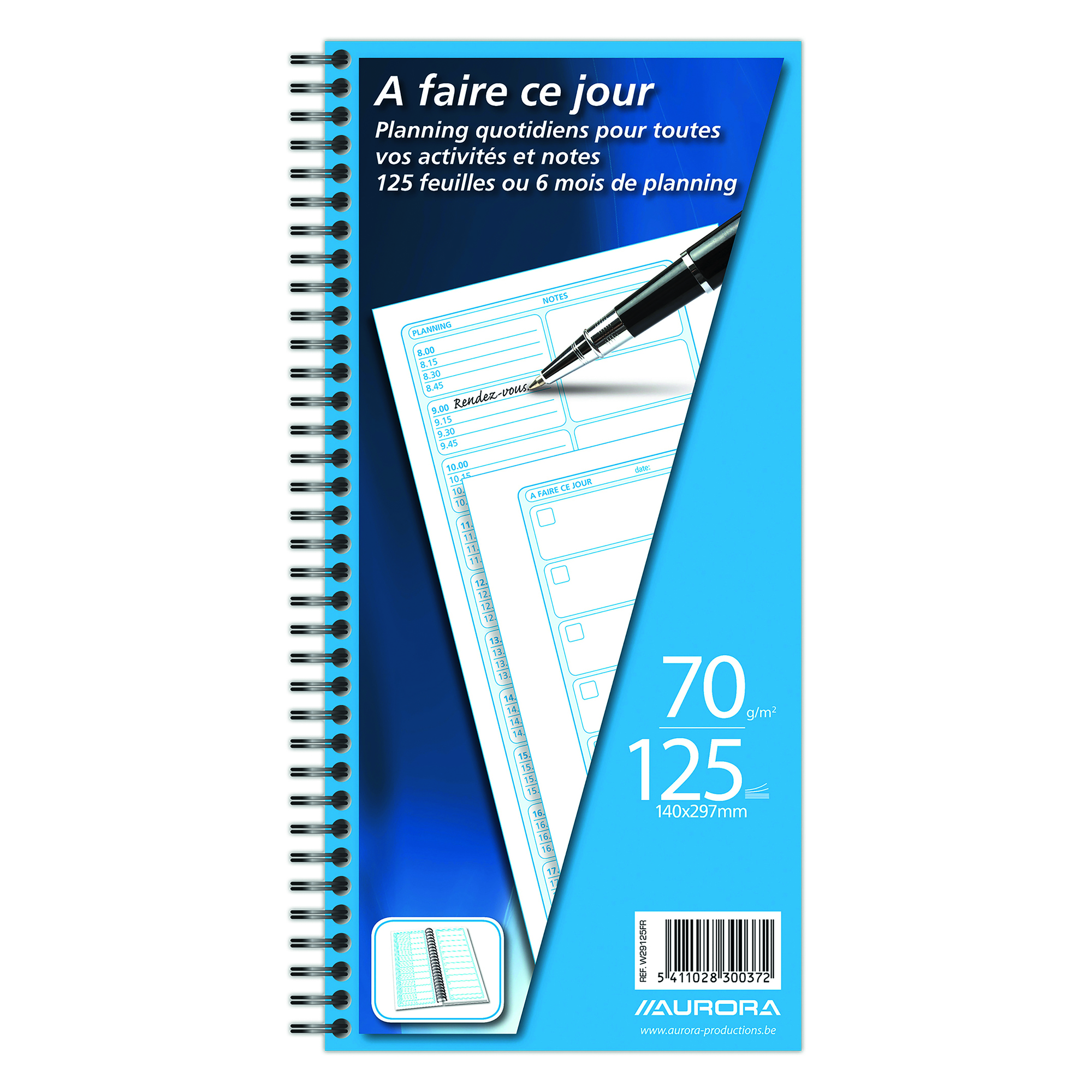 Detaillierte BeschreibungTagesplan für alle Ihre Aktivitäten, Notizen und Termine. 125 Blatt, genügend für 6 Monate Arbeitsplanung. Format: 140 x 297 mm. Spiralbindung.