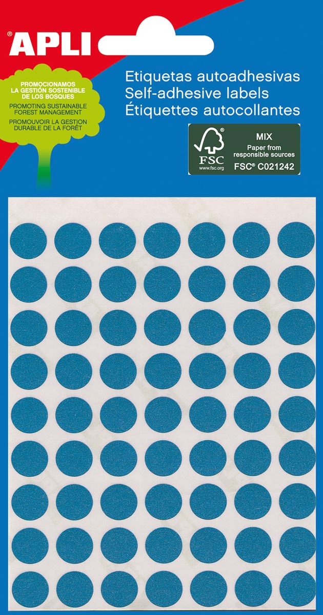 Apli étiquettes rondes en pochette diamètre 8 mm, bleu, 288 pièces, 96 par feuille (2045)