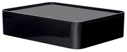 Detaillierte BeschreibungEn plastique ABS, empilable, insert mobile et amovible,avec couvercle, très brillant, avec patins de protection encaoutchouc, dimensions intérieures: (L)75 x (P)180 x (H)48mmdimensions extérieures: (L)260 x (P)195 x (H)68 mm