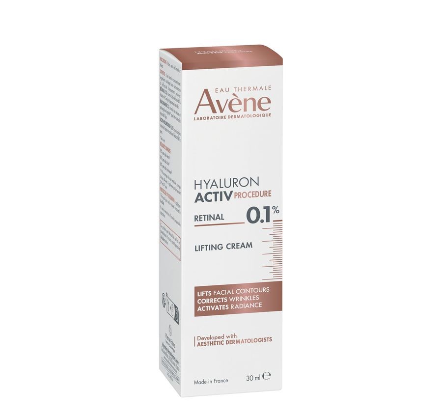 Eau Thermale d’Avène, Triglycéride Caprylique/Caprique, Glycérine, Squalane, Beurre de Karité, Huile de Graines de Carthame, Tétracaprylate/Tétracaprate de Pentaérythrityl, Alcool Cétearylique, Alcool Béhenylique, Niacinamide (2 %), Phosphate d’Alkyle C20-22, Alcools C20-22, Gomme d’Acacia Senegal, Adénosine, Glucoside de Cétearyle, Huile de Graines de Tournesol, Rétinal (0,1 %), Benzoate de Sodium, Hyaluronate de Sodium, Hydroxyde de Sodium, Extrait de Fruit de Terminalia Chebula, Tocophérol, Glucoside de Tocophéryle, Gomme Xanthane ; 97 % d’origine naturelle, vegan.
