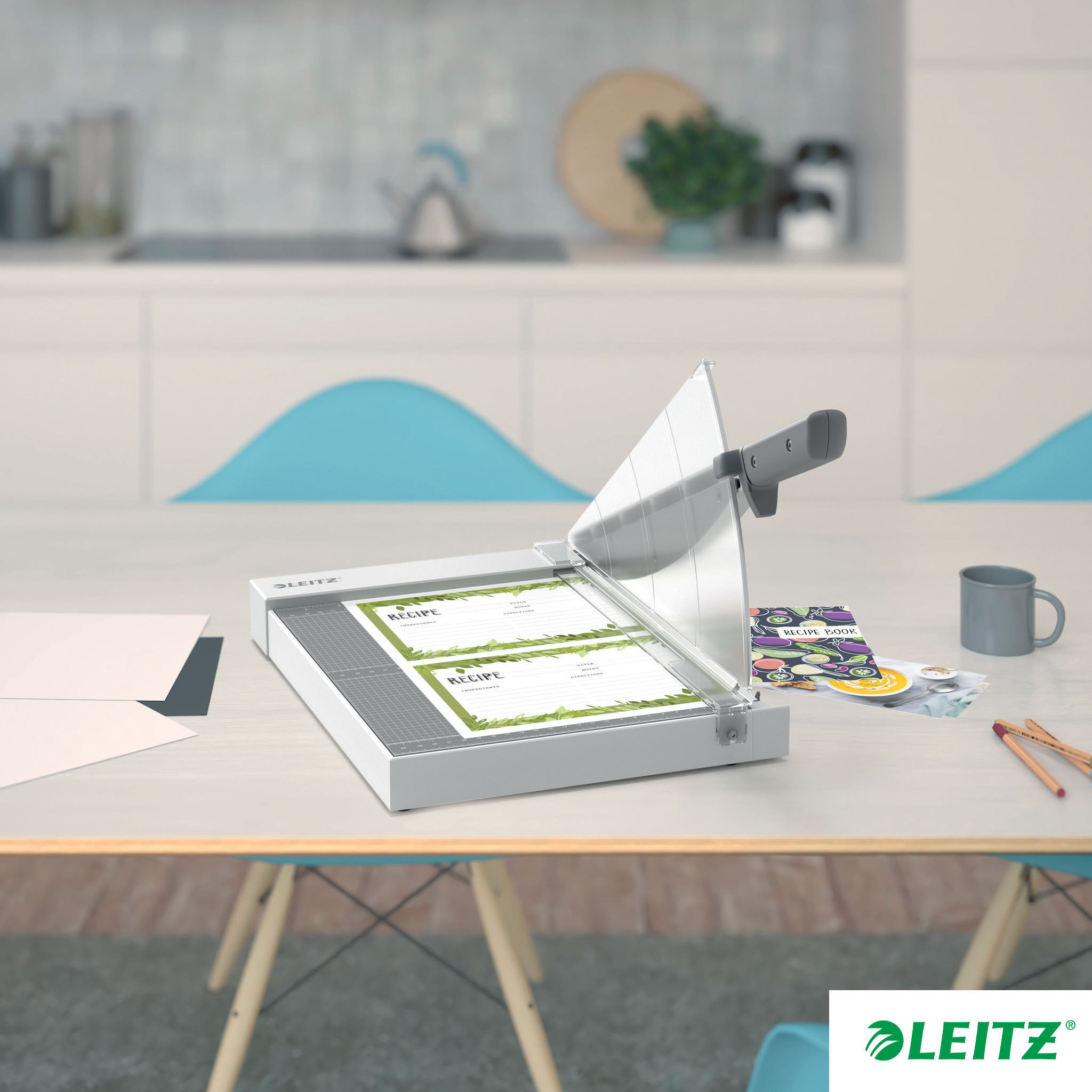Der Leitz Home A4 Papierschneider schneidet sicher bis zu 8 Blätter Papier (80 g/m²). Dank seines kompakten Designs eignet er sich ideal für kleinere Arbeiten zu Hause (Handwerk und Freizeitaktivitäten). Schneiden Sie damit auch Etiketten, Fotos, Karten oder laminierte Dokumente. Der ergonomische Griff erleichtert das Schneiden und ermöglicht eine präzise Arbeit.