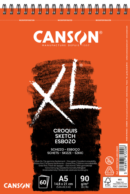 Detaillierte Beschreibung* Convient pour les crayons, fusains et autres techniques sèches. * Sans acide et sans azurants optiques. * Avec reliure à spirale sur le côté court et microperforations.