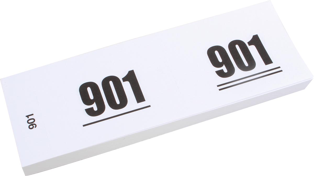 Detaillierte BeschreibungBloc double numéroté de 1 à 1000 avec perforation au milieu. Emballé en boîtes avec 10 blocs de 100 numéros.