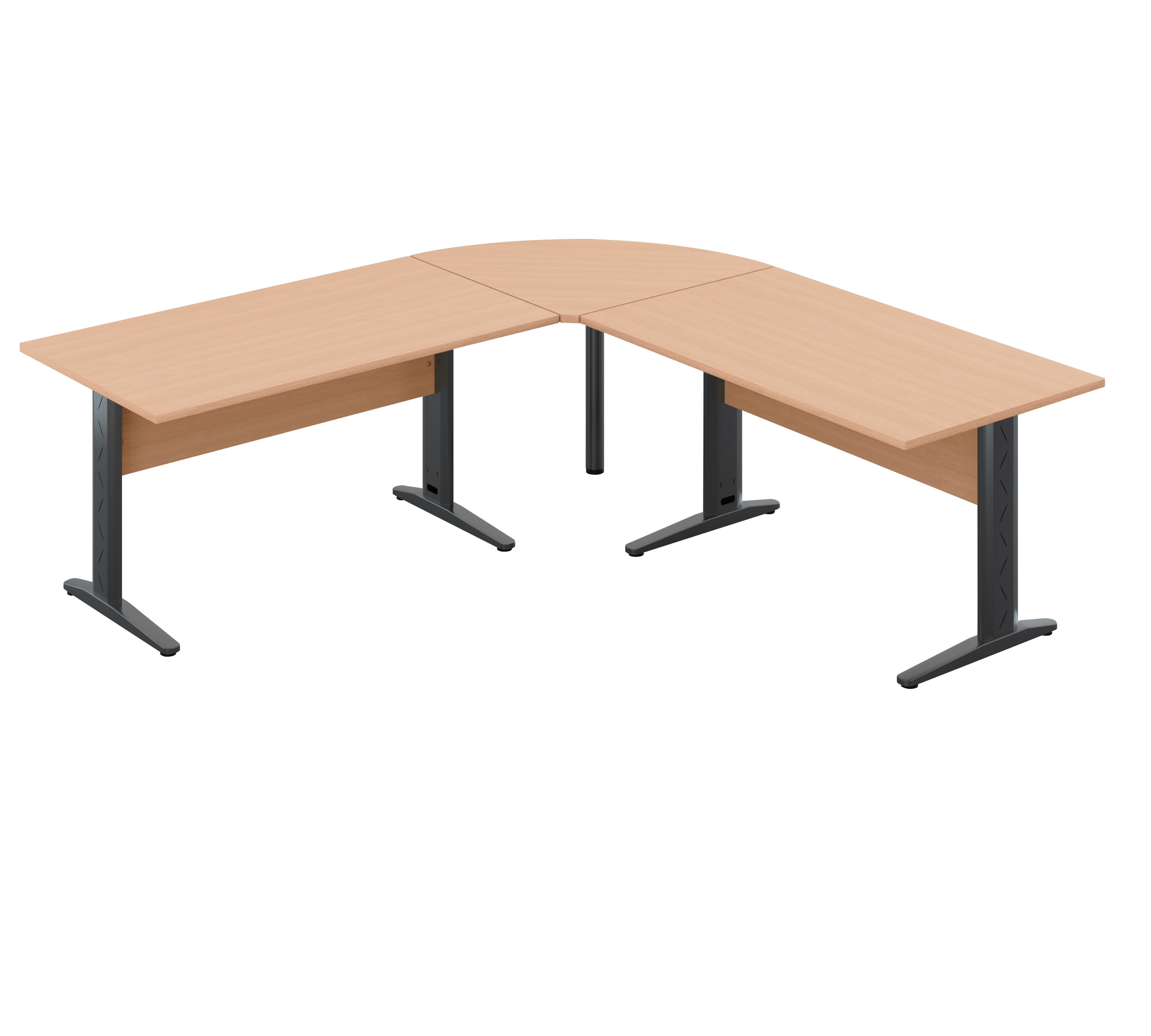 • Gesamtabmessungen: B 220 x T 220 x H 73 cm (Konfiguration: Schreibtisch A B 140 × T 80 cm + Verbindungs-Winkel 90° Radius 80 cm + Schreibtisch B B 140 × T 80 cm).