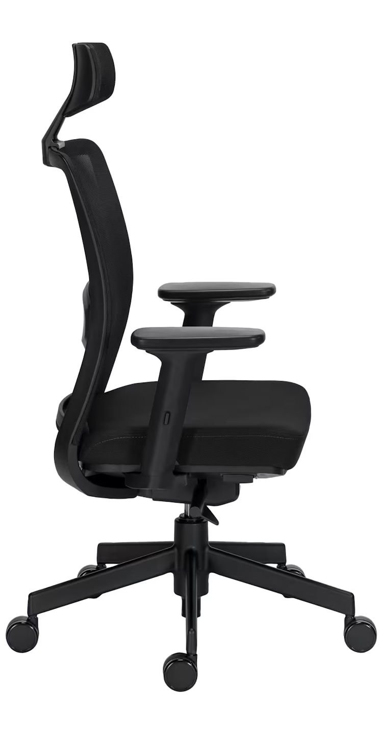 Accoudoirs réglables en hauteur et en profondeur. Ajustez la translation avant/arrière selon la tâche (saisie, souris, écriture) et placez la bonne hauteur pour des coudes à 90°. Un soutien polyvalent qui s’adapte au geste et réduit la fatigue du haut du corps. Un bon compromis pour adapter le soutien au geste sans complexifier les réglages.