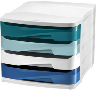 Avec ses dimensions de 292 x 386 x 246 mm, le CEP Module de classement Riviera s'intégrera aisément à votre environnement de travail, tout en ajoutant une touche de couleur grâce à sa finition blanc/bleu.