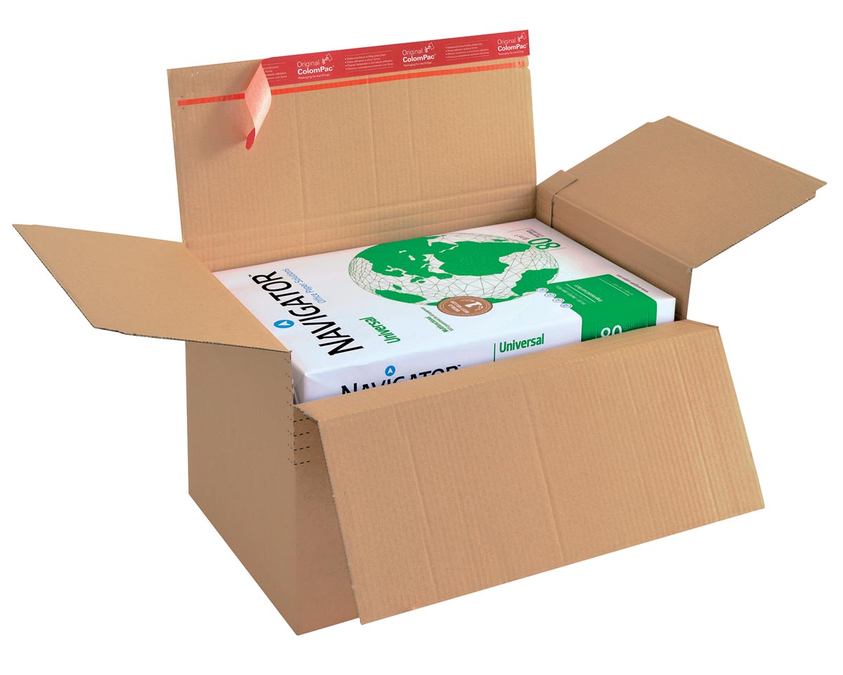 Facile à ajuster à la hauteur de la marchandise emballée. Fond à pliage enchevêtré (fond automatique) économisant du temps et ne nécessitant aucun montage ou collage supplémentaire. Niveaux de remplissage différents grâce aux plis prémarqués à 1 cm d'intervalle. Fermeture adhésive économisant du temps et ne nécessitant aucun autre moyen de fermeture. Bande déchirable pour une ouverture rapide et facile. Livraison à plat. Dimensions sont les dimensions intérieures. Couleur: brun. Certificat: FSC Mixte ? C003008 Matériaux recyclés : 70 %