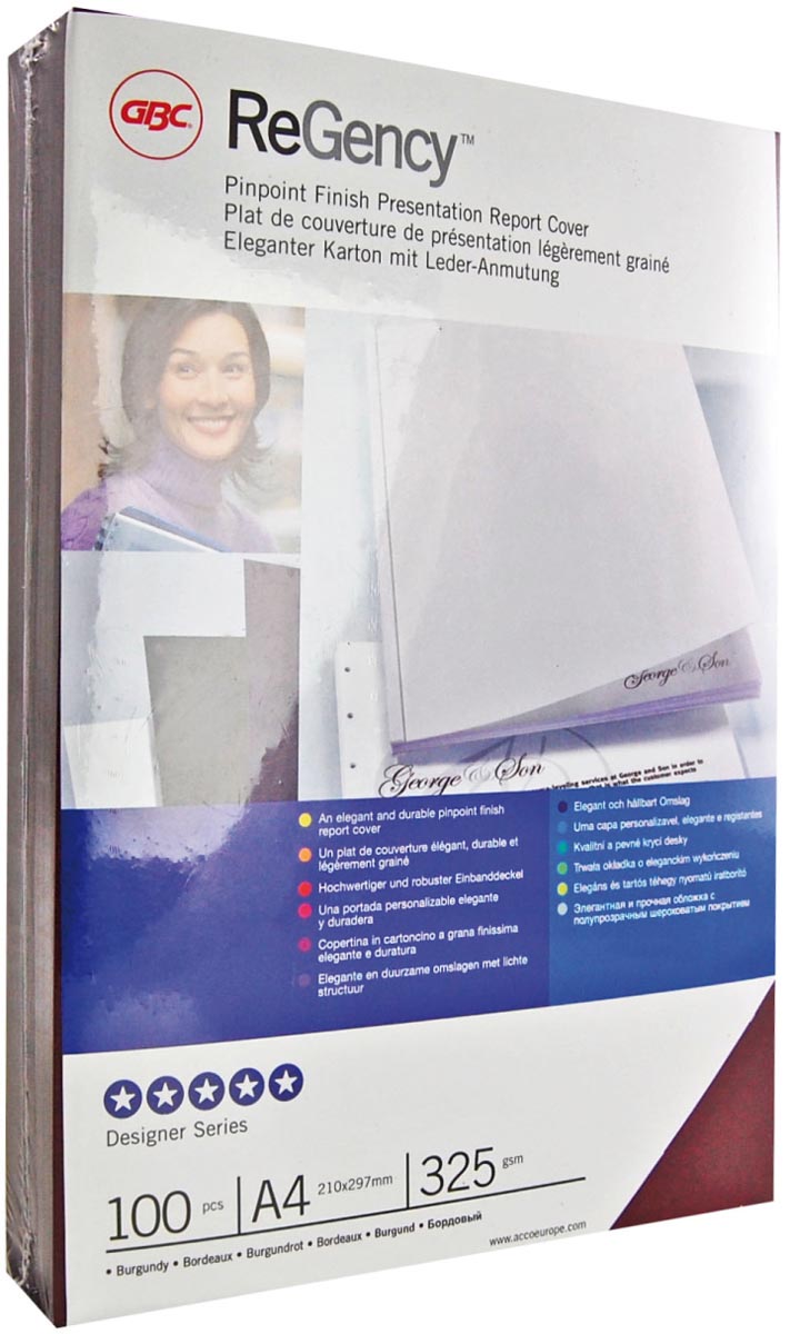 Optez pour la couverture de reliure ReGency de Gbc, une solution idéale pour apporter une touche de professionnalisme à vos documents reliés. Conçue en carton de qualité supérieure, cette couverture A4 de 325 g/m2 est à la fois résistante et élégante.