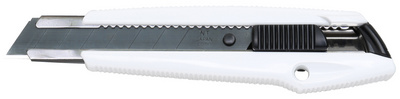 Detaillierte BeschreibungBoîtier en plastique blanc, lame 18 mm, pour des travauxlégers à durs, avec mécanisme d'avance, guide-lame, enmétal, glissière avec blocage automatique, lame Black Bladeultra tranchante