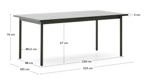 DE_Table d’extérieur Maurina en acier galvanisé vert et céramique verte 223 x 101 cm