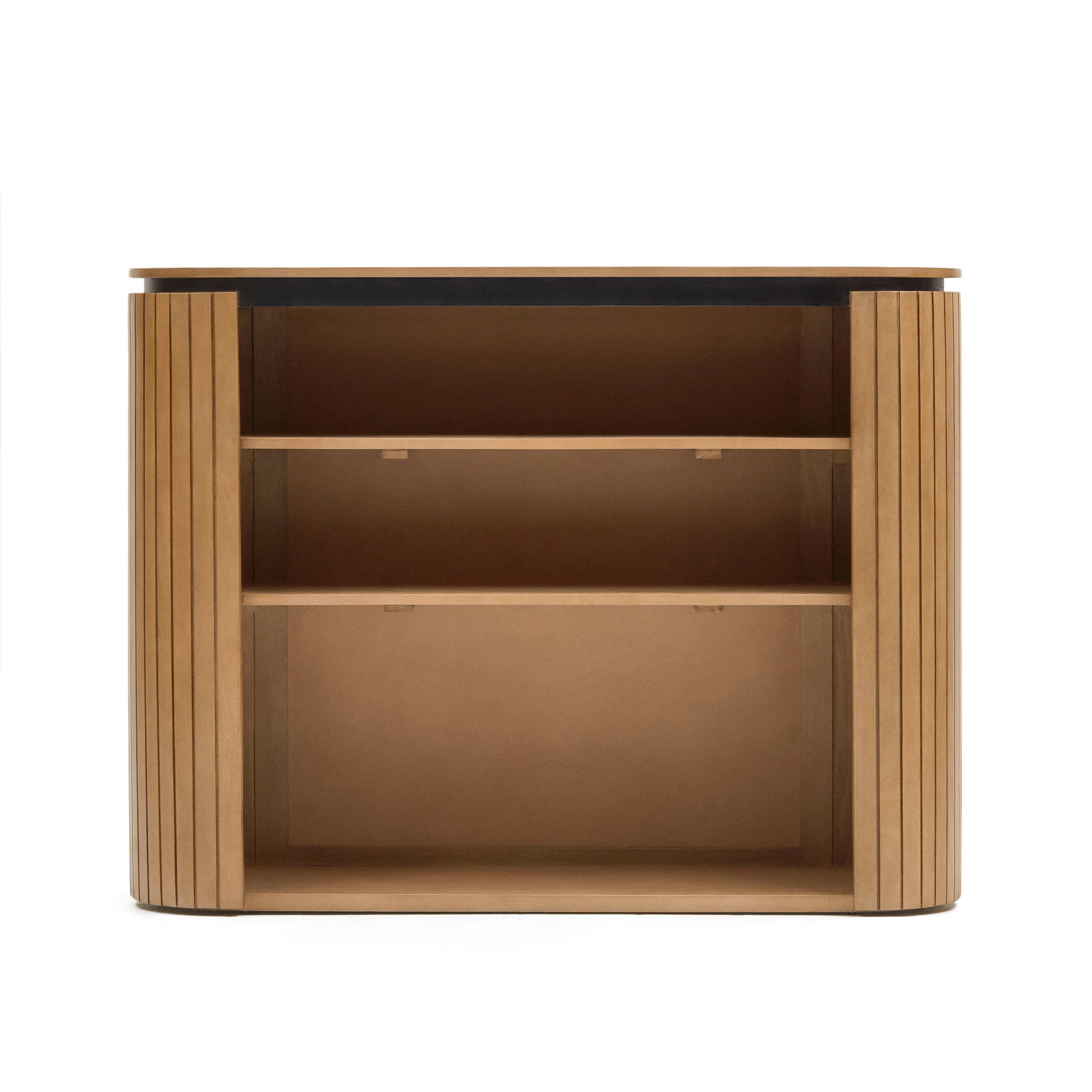 Licia est une création de l'équipe Kave Home faite de façon artisanale avec des pièces en bois de manguier massif et durable, placées une à une pour créer cette forme arrondie. Une tendance qui apporte du mouvement et de la fluidité à vos intérieurs.