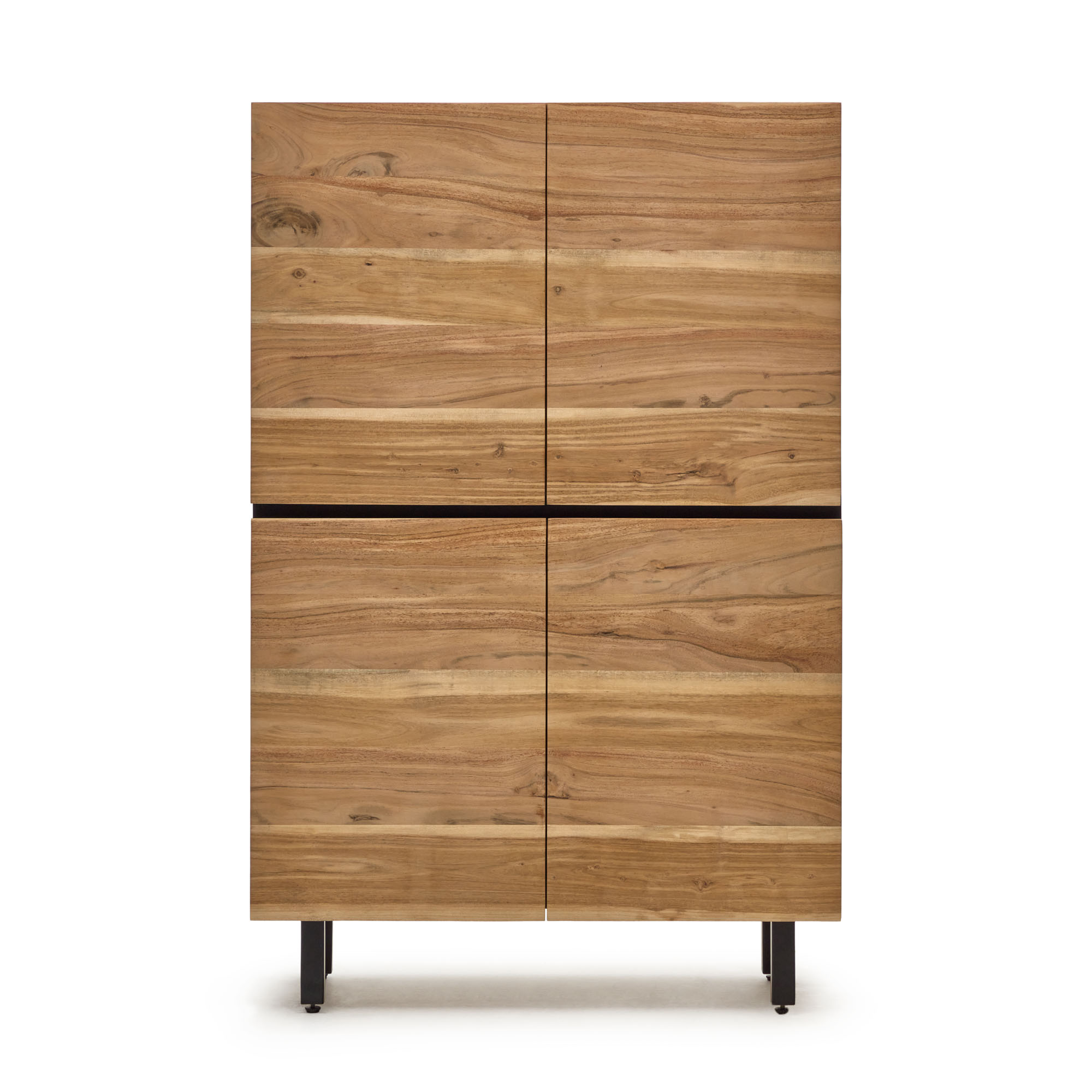 La collection Uxue en bois d'acacia massif est une création de l'équipe Kave Home. Elle se distingue par la ligne noire qui traverse chaque meuble. Chaque pièce est exclusive grâce aux veinures et aux tonalités uniques caractéristiques du bois.- Buffet haut 4 portes.