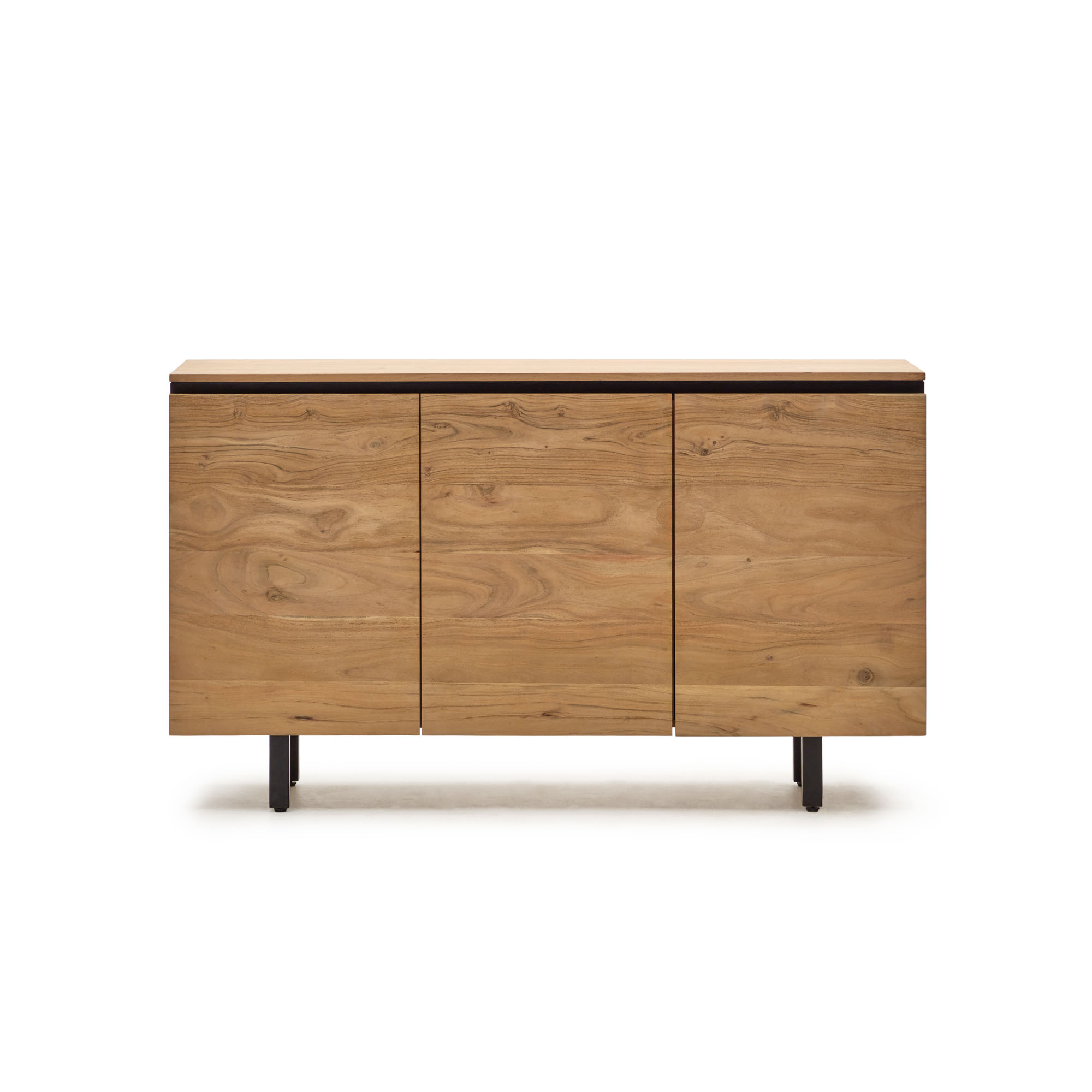 La collection Uxue en bois d'acacia massif est une création de l'équipe Kave Home. Elle se distingue par la ligne noire qui traverse chaque meuble. Chaque pièce est exclusive grâce aux veinures et aux tonalités uniques caractéristiques du bois.- Buffet 3 portes.