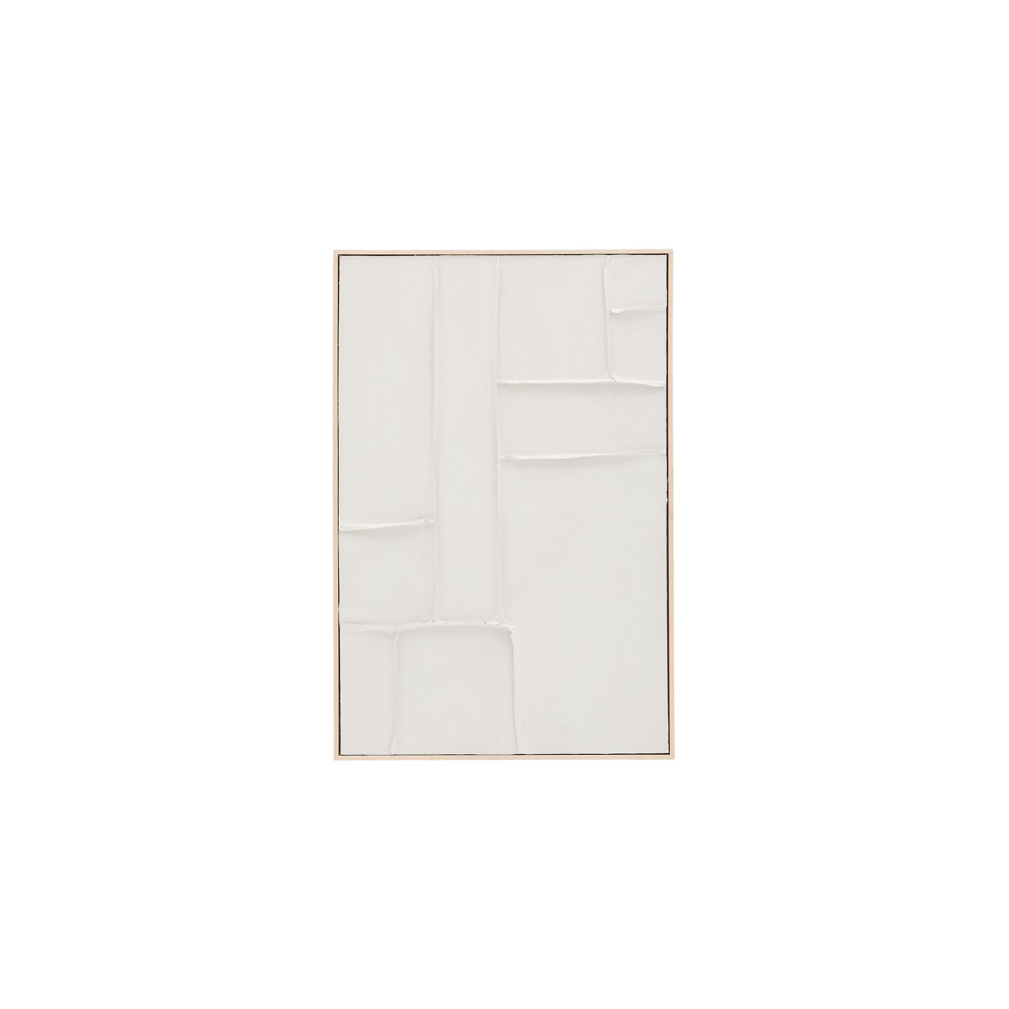 Tableau abstrait en lin avec reliefs de couleur blanche.