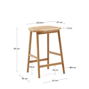 Hocker aus beigem Papierseil und Eichenholz in natürlicher Ausführung 65cm