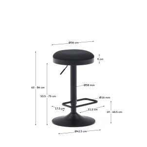 DE_Tabouret Zaib en chenille noir et acier noir mat hauteur 58-80 cm