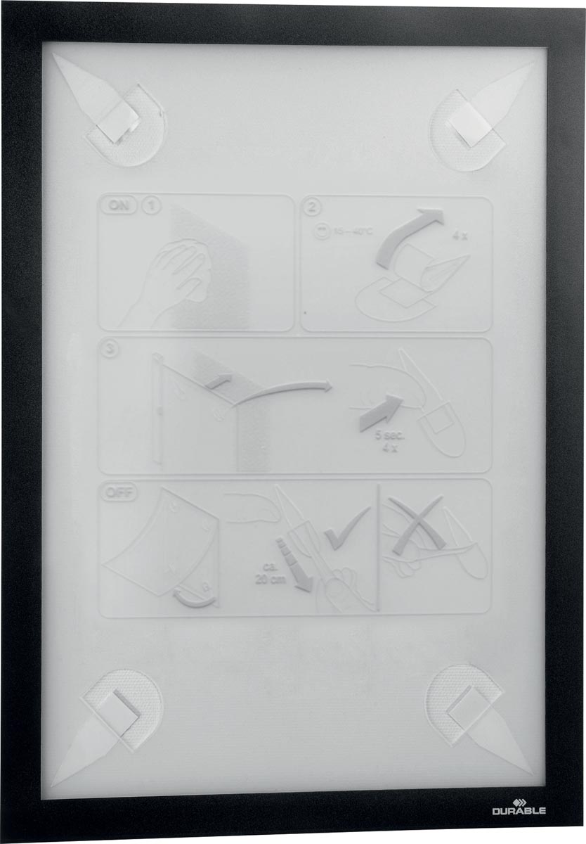 * Cadre d’affichage pour surfaces délicates. * Facile à retirer sans dommage grâce au 4 languettes adhésives. * Idéal pour l’affichage de documents A4 sur du papier peint, bois et surface plastifié. * Solution professionnelle et de qualité pour la présentation d’informations. * Réactualisation simple et rapide de l’information grâce à l’encadrement magnétique. * Se retire en tirant sur les languettes pour décoller la partie adhésive sans laisser de traces ou abîmerla surface. * Inclus set de 4 languettes de rechange. * A utiliser en position portrait ou paysage. * Dimensions extérieures 322x236mm. * La surface de fixation doit être rigide, plate, propre, sèche et sans graisse.