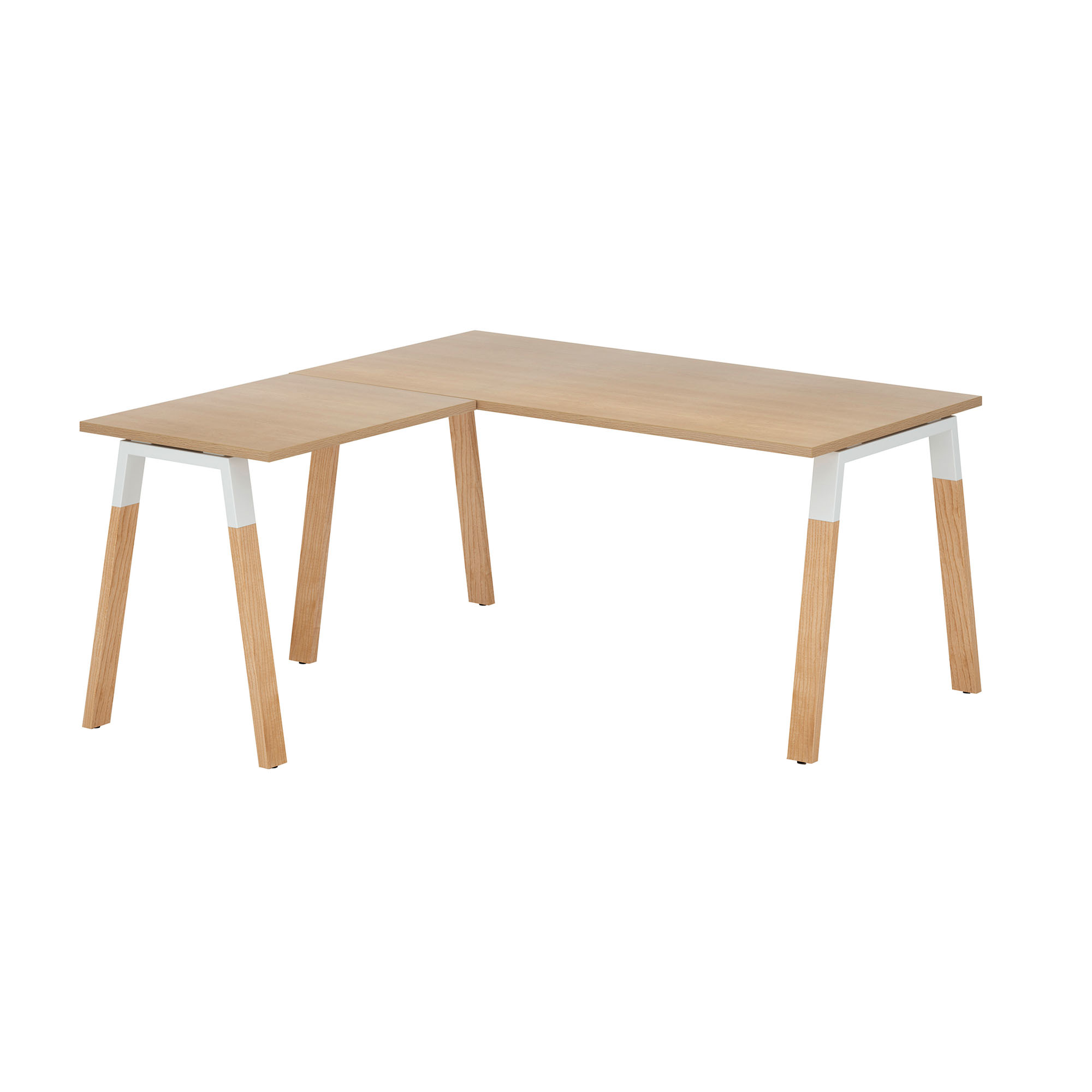 Übernehmen Sie diesen Ecke Schreibtisch Ecla im skandinavischen Design mit Beinen aus Bimetall und Massivholz, ideal für eine erweiterte Arbeitsfläche.