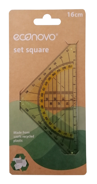 Detaillierte Beschreibung* Equerre géométrique transparent, 16cm. * Fabriqué en plastique recyclé (RPS : 100% polypropylène recyclé post-consommation (RM0205). * Présenté sous blister kraft. * La devise d'Econovo est : Moins de déchets pour une meilleure planète!