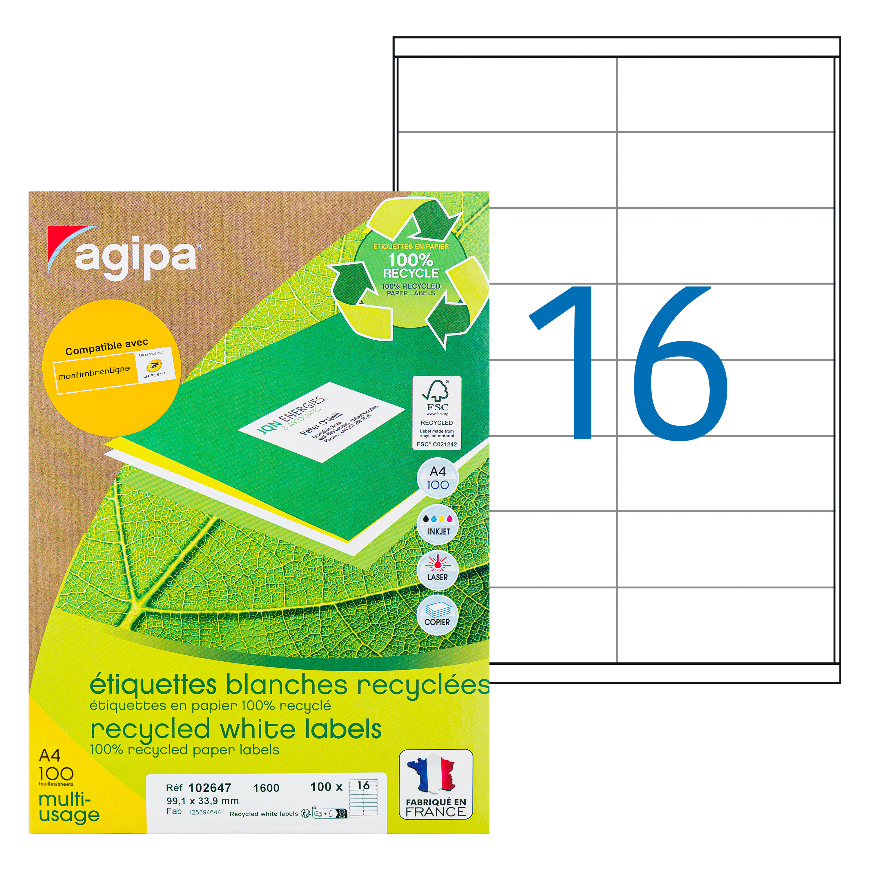 Etiketten hergestellt in Frankreich aus 100% recyceltem FSC-zertifiziertem Papier ohne Chlor.