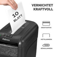 L'appareil se distingue par son niveau de sécurité DIN 66399 : P-4, garantissant ainsi la confidentialité de vos documents détruits. Sa largeur d'introduction de 23 cm permet un traitement rapide des éléments à détruire, y compris le papier, les cartes bancaires et les agrafes/trombones. De plus, grce à sa capacité par passage de 10 feuilles, votre travail de destruction de documents sera grandement facilité.