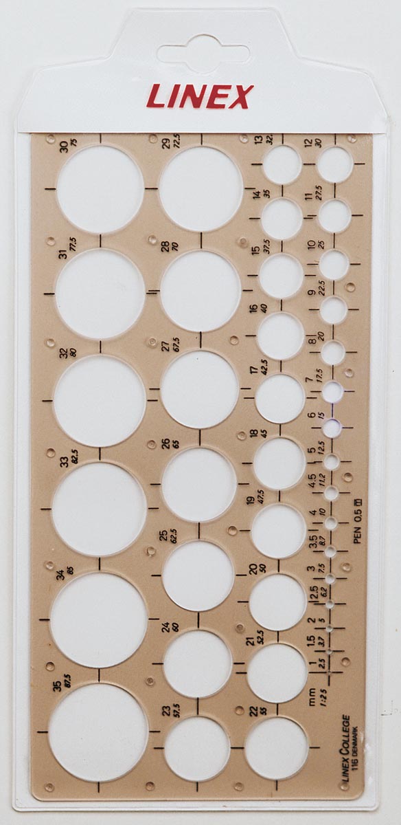 Detaillierte Beschreibung* Gabarit de 39 cercles de 1-35mm. * Matériau: plastique coloré transparent. * Vert translucide. * A utiliser avec crayons et fineliners.