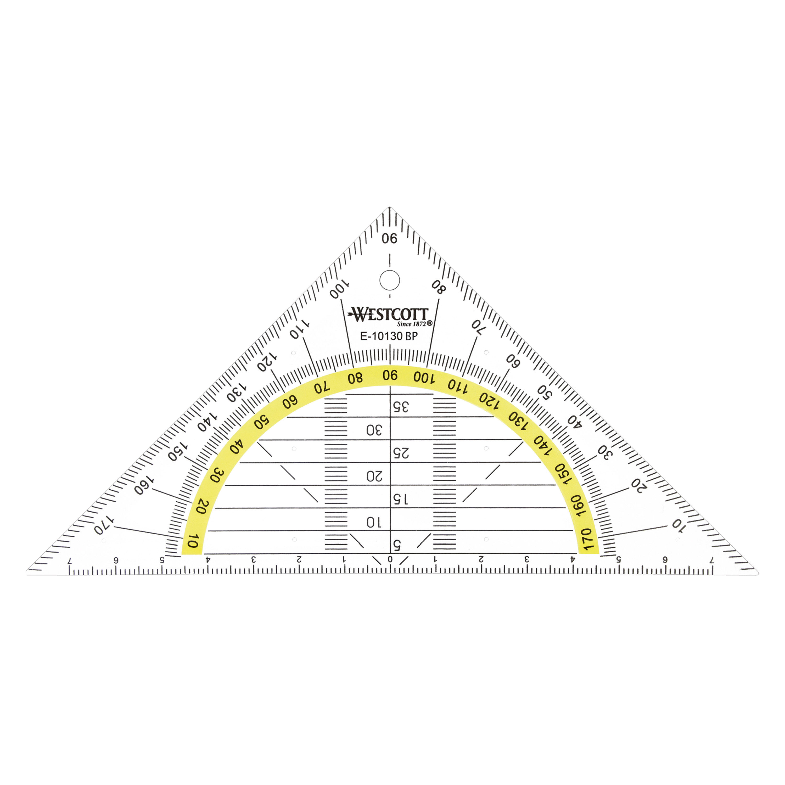 Detaillierte BeschreibungEquerre géométrique hypoténuse longueur 16 cm.Echelle bidirectionnelleTransparenteRapporteur intégré