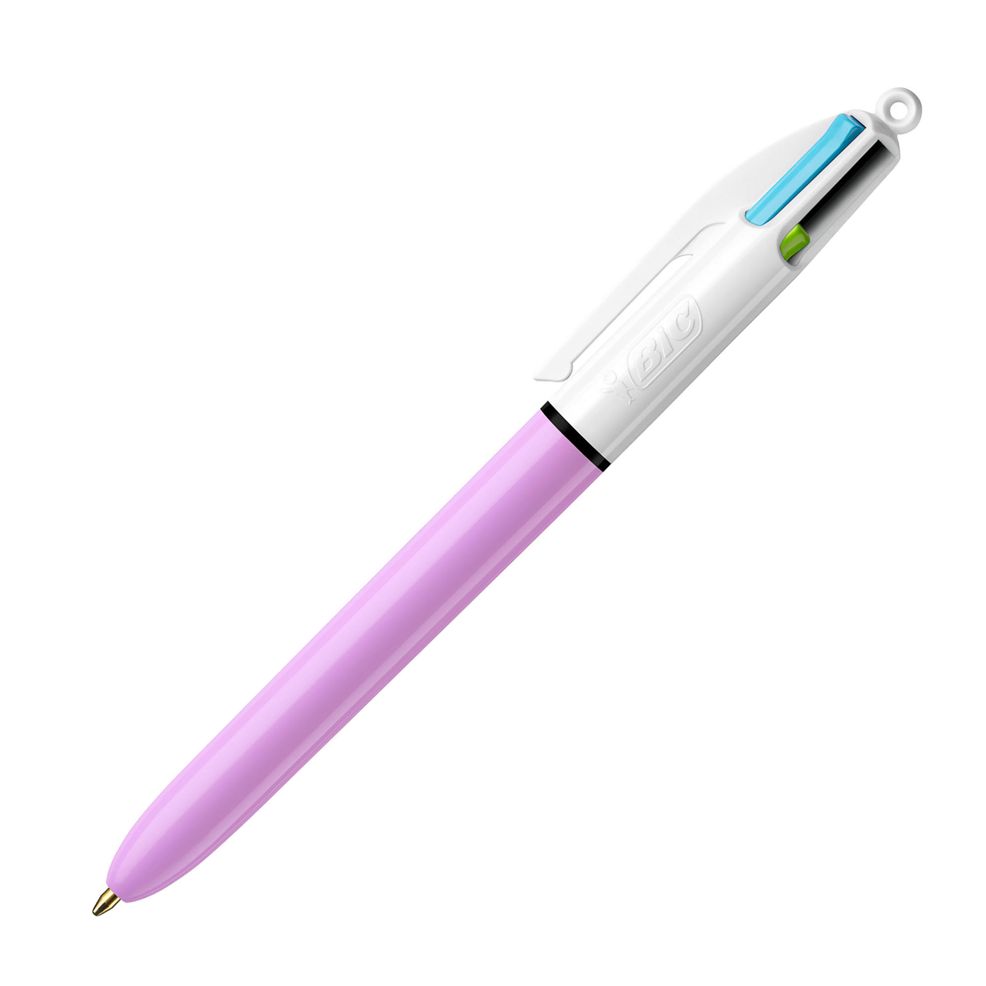 Der BIC 4-Colours Kugelschreiber ist mit einem wunderschönen lila Körper und 4 Schreibfarben in Rosa, Violett, Türkis und Limettengrün ausgestattet.