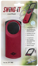 Detaillierte BeschreibungLumière LED dans un boîtier en plastique, lentille plastique(48 x 38 mm), agrandissement: 3 x, plat, avec surface mate,la lumière s'allume & s'éteint quans on sort la loupe del'étui en tournant, avec 2x pile 3V CR2016, sous blister