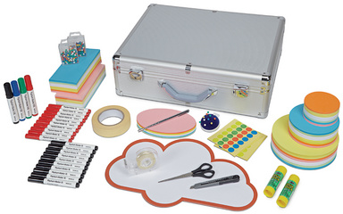 Pour faciliter la prise de notes et le partage d'informations, la mallette propose 1.370 cartes et 960 pastilles autocollantes, permettant d'organiser vos idées de manière claire et structurée. Enfin, une baguette de pointage télescopique avec stylo-bille est incluse, vous offrant un outil de présentation pratique et polyvalent.