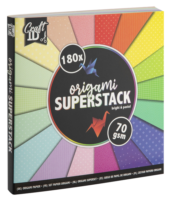 L'origami est l'art japonais du pliage de papier, ori signifiant pliage et kami signifiant papier. Il s'agit de transformer une feuille de papier en œuvre d'art, en utilisant différentes techniques de pliage, sans découpage ni collage. * Jeu de 180 feuilles. * Format : 15x15cm. * Papier 70g/m². * L'emballage est certifié FSC.