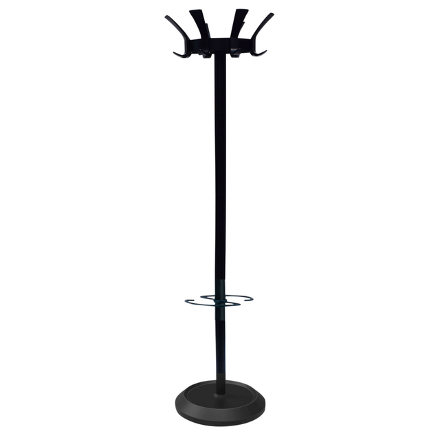 Le portemanteau London de BRASQ pourrait être qualifié de consécration. Ce portemanteau sur pied dispose de 8 crochets robustes et offre au total de l'espace pour 16 vêtements. Si le temps est un peu pluvieux, vous pouvez également ranger votre parapluie dans le support prévu à cet effet. Ce portemanteau luxueux a une finition entièrement noire et est parfait pour tous les espaces de travail. Le portemanteau London est fabriqué en acier de haute qualité et est également doté d'un revêtement poudré noir. Le revêtement poudré rend le portemanteau résistant aux rayures et lui permet de durer très longtemps sans se décolorer. Tous les portemanteaux BRASQ sont dotés d'un socle lesté et d'une enveloppe plastifiée qui assure la solidité du portemanteau. Le portemanteau BRASQ London est livré en kit et se monte facilement en quelques étapes. Le manuel de montage est inclus.* Dimensions : 35x43x176cm* Diamètre du socle : 35cm* Diamètre du tube en acier : 4,8cm* Poids : 8,5kg* Matériaux : acier et plastique* Nombre de crochets : 6* Socle lesté* Porte-parapluie* Livré en kit* Mode d'emploi inclus* Garantie : 1 an