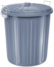 Detaillierte BeschreibungPlastique couvrant & mat, 2 étriers en métal pour refermer le couvercle, poignées intégrées, diamètre: 510 mm, hauteur: 630 mm