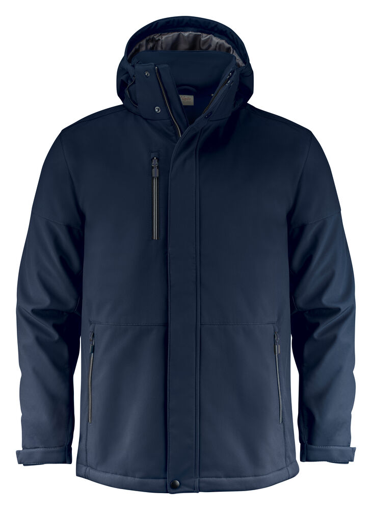 Gefütterte Softshell-Jacke mit abnehmbarer Kapuze. Reißverschlussabdeckung mit Druckknöpfen in der vorderen Mitte. Verstellbare Klettverschlüsse an den unteren Ärmeln und elastische Kordel an der Kapuze und am unteren Saum. Zwei Innentaschen mit Reißverschluss. Reflektierende Paspel am unteren Rücken. Abreißbares Halsetikett und separates Größenetikett. Wäschesplittertasche an der linken inneren Seitennaht. Reißverschlüsse in Kontrastfarbe. Ersatzreißverschlüsse sind separat erhältlich. Öko-Tex 100-zertifiziert.