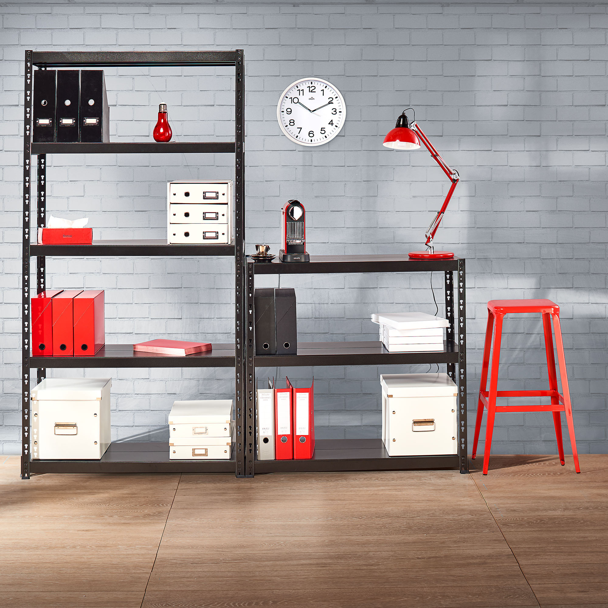 Robust und widerstandsfähig, wählen Sie dieses Regal, um allerlei Gegenstände leicht zu lagern. Struktur aus 8/10 mm Stahlblech mit Epoxid-Finish, Hammer-Effekt, Anthrazit-Farbe.