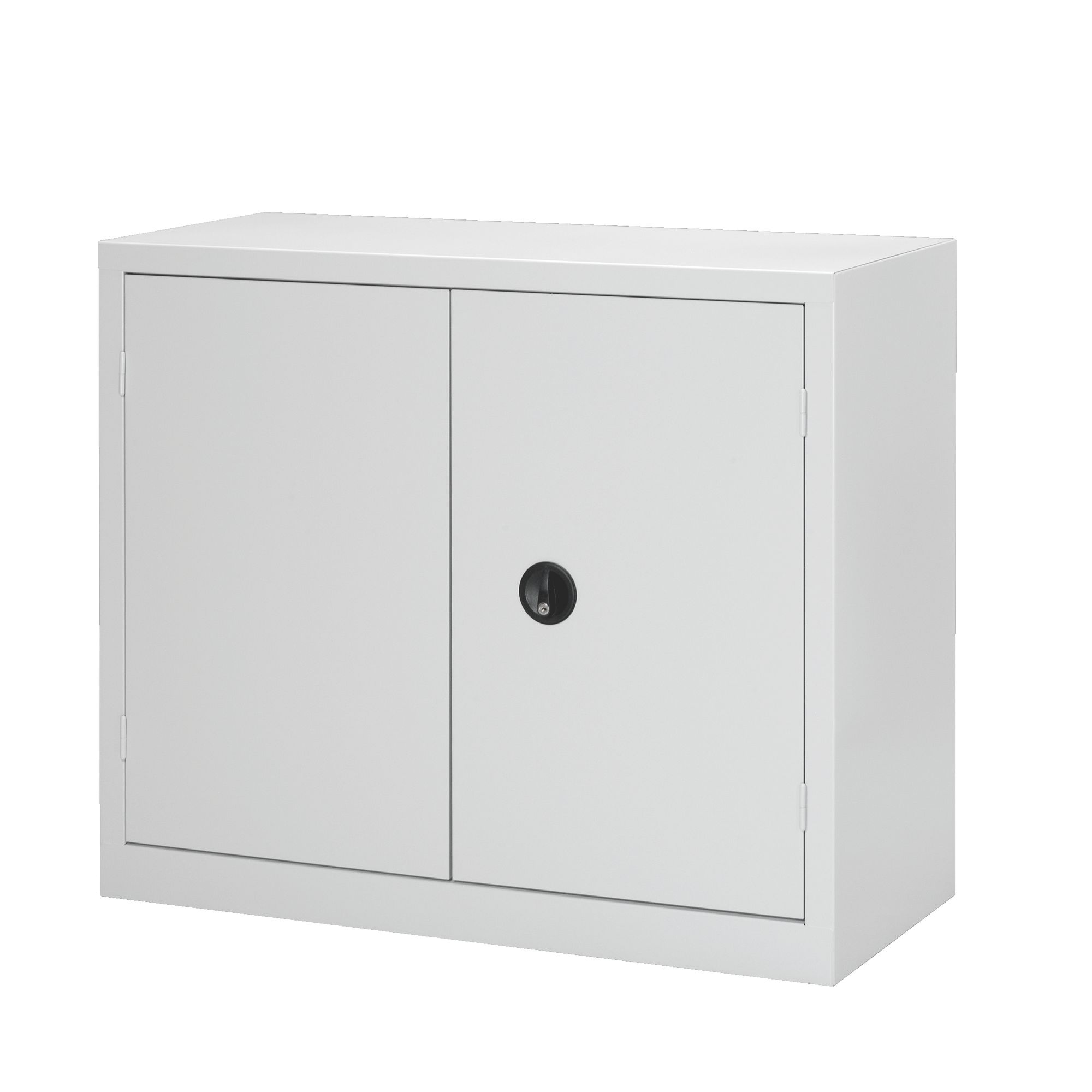 Stahlblechstruktur 10/10, Schweißmontage. Hellgrauer Körper RAL 7035. Türen in Blau oder Grau mit mittiger Verstärkung an jeder Tür für maximale Steifigkeit und Sicherheit. 2-Punkt-Verriegelung. Ergonomisches Schloss.