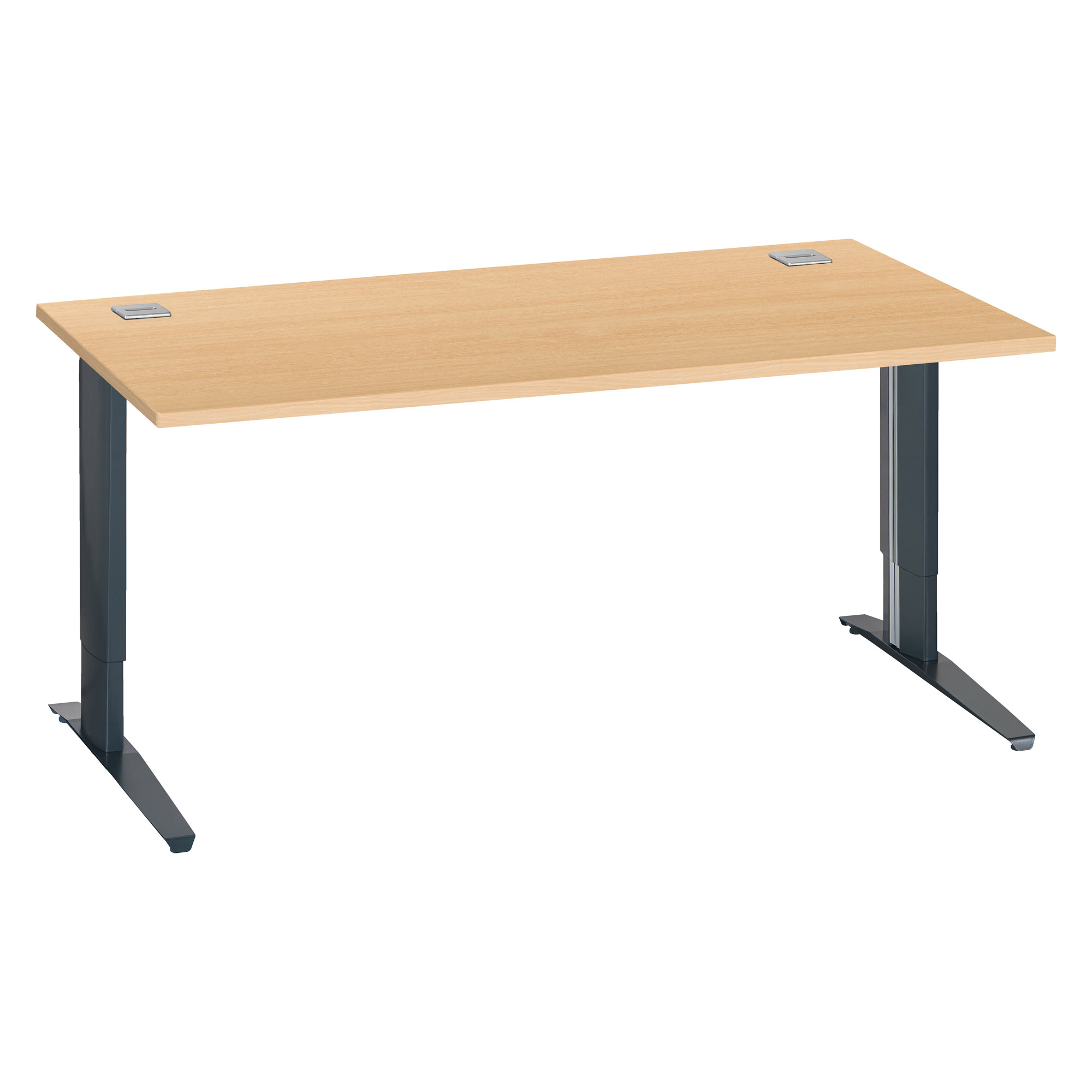 L-förmige Metallbeine höhenverstellbar von H 67,5 bis 87,5 cm (inklusive der Platte) und ein Metallträger unter der Platte für mehr Stabilität und Festigkeit. Raster und stufenlose Einstellung möglich.