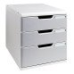 Esthetik und sehr praktisch, das 3-Schubladen-Sortiermodul Exacompta Modulo ist die ideale Lösung, um sich zu organisieren und Ordnung in Ihrem Arbeitsraum zu schaffen. - Mit seinen 3 Schubladen, die leicht zu verschieben und auszutauschen sind, können Sie mühelos alle Ihre Dokumente bis zum Format 24 x 32 cm ordnen. Mit schönen Kapazitäten können die ersten beiden Schubladen (Außenmaße H 6,8 x B 25 x T 32,5 cm) bis zu 400 Blatt aufnehmen und die große untere Schublade (Außenmaße H 9,4 x B 25 x T 32,5 cm) 850 Blatt enthalten.