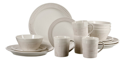 Detaillierte BeschreibungEn faïence, lavable au lave-vaisselle, set composé de:4 mugs, 4 assiettes à dessert, 4 assiettes plates, 4 bols