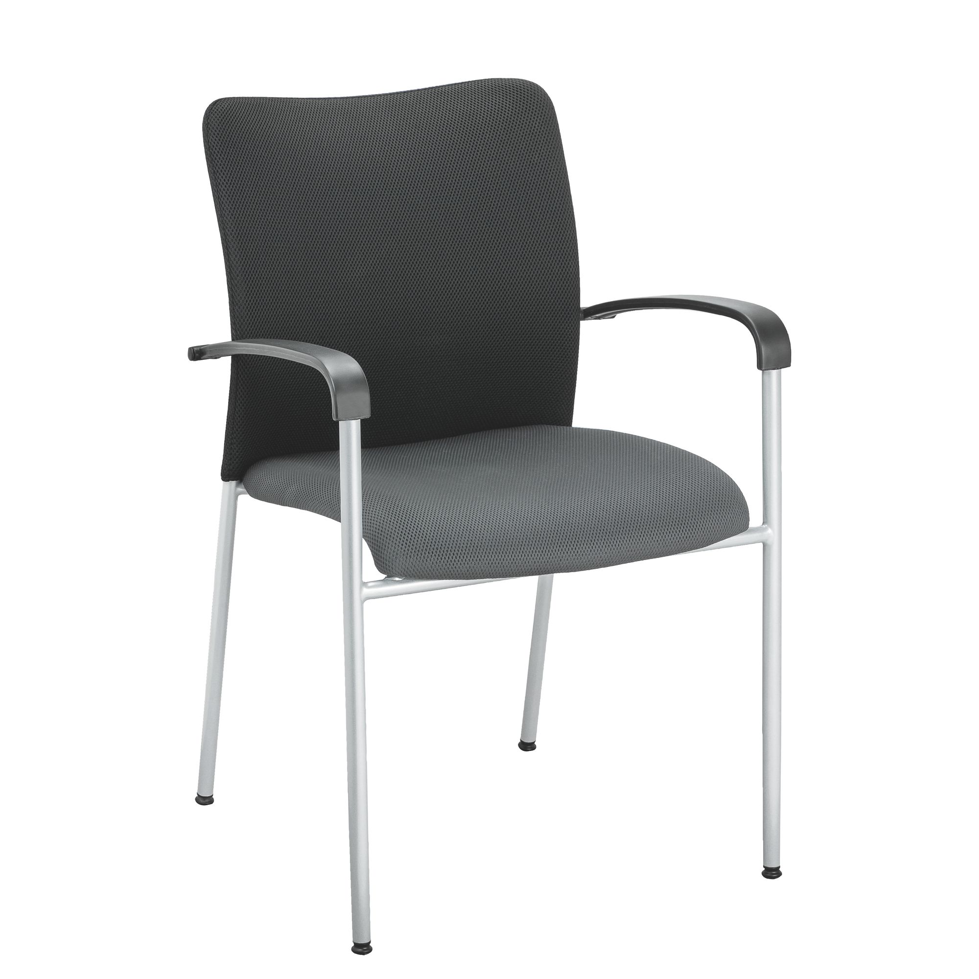 Sitzung und Rücken in 100% Polyester mit schweißhemmender Wabenstruktur. Gestell mit 4 Pfoten in aluminiumfarbigem Epoxidmetall, ausgerüstet mit rutschfesten Füßchen.