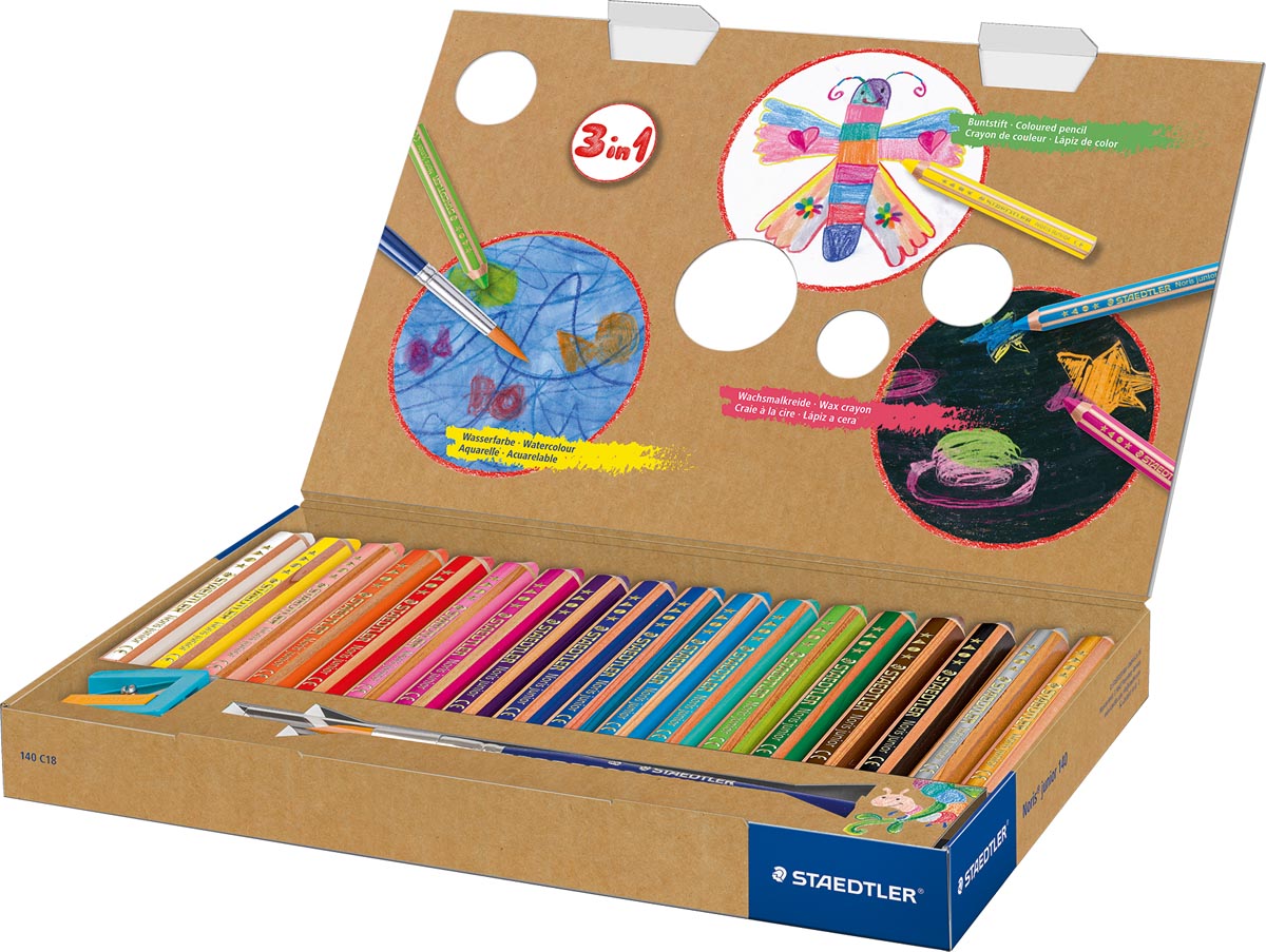 Explorez les possibilités créatives offertes par l'étui de Crayon de couleur hexagonal Noris junior de la marque Staedtler. Cet ensemble de 18 crayons aux diverses couleurs vives est parfait pour les professionnels qui cherchent à fournir des matériaux de qualité pour leurs projets artistiques.