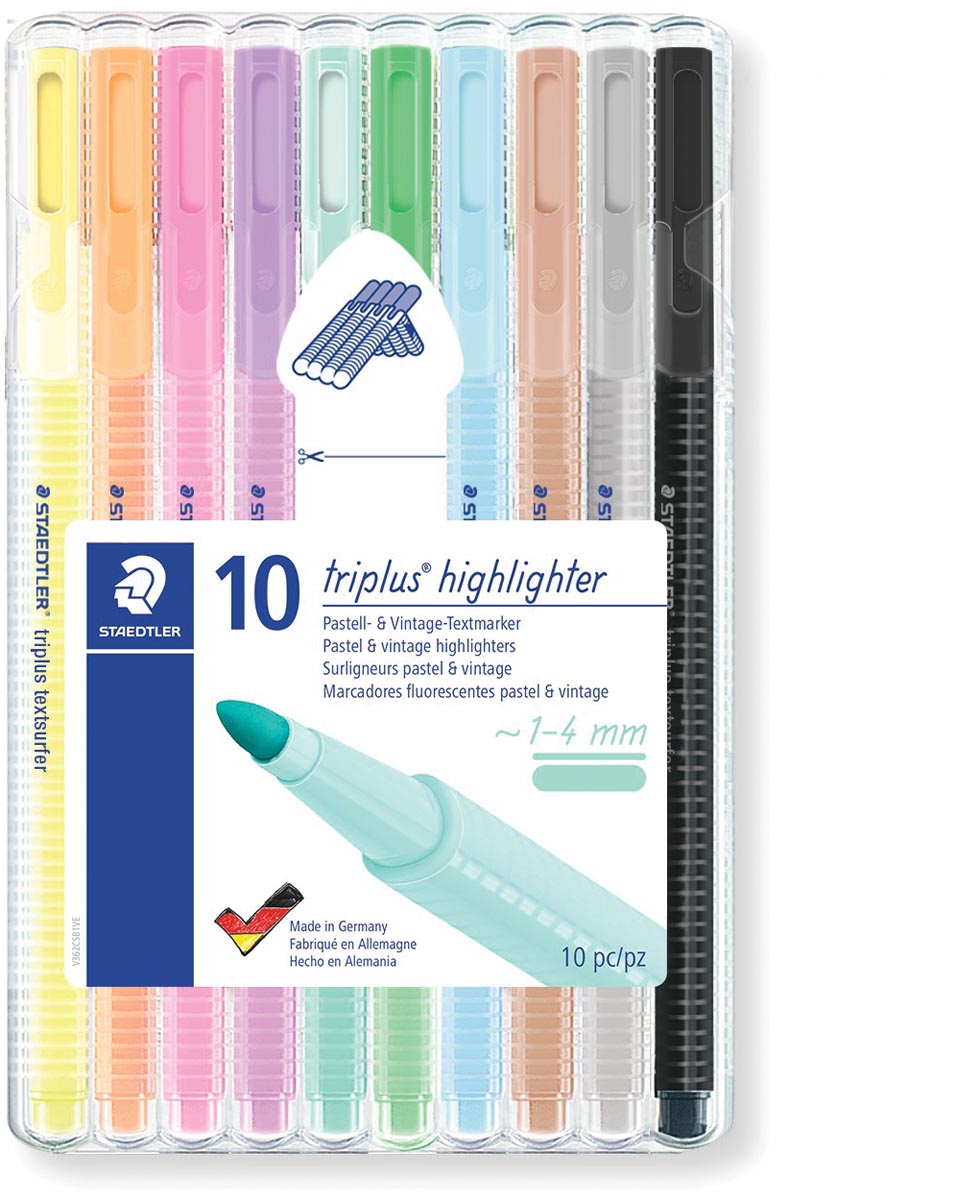 Sublimez vos documents avec le surligneur 'triplus highlighter' de la marque Staedtler, disponible en étui de 10. Cet assortiment de surligneurs aux couleurs variées vous permettra de mettre en valeur les informations essentielles de vos textes, tout en apportant une touche de couleur à vos pages. Les nuances pastel et vintage offertes dans cet étui sont idéales pour s'adapter à toutes vos envies et besoins en matière de surlignage.