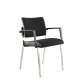 Stuhl auf 4 Pfoten mit Armlehnen. Rechteckige, verchromte Struktur 25 x 15 mm. Mit kleinen runden Scheiben in schwarzem Plastik unter den Pfoten zum Schutz. Armlehnen in schwarzem Polypropylen, nicht entfernbar. Rückenlehne mit Bekleidung in schwarzem Plastik. Moderne Bekleidung in 2 Farben mit einem sichtbaren Stich. Stapelbar pro 4. Mit Schutzsystem für Stapelung. Tragkraft: 120 kg. Gewicht: 10 kg. Breite der Sitzung: 46 cm. Abmessungen der Sitzung: H 45 x T 47 cm. Höhe der Armlehnen: 66 cm.