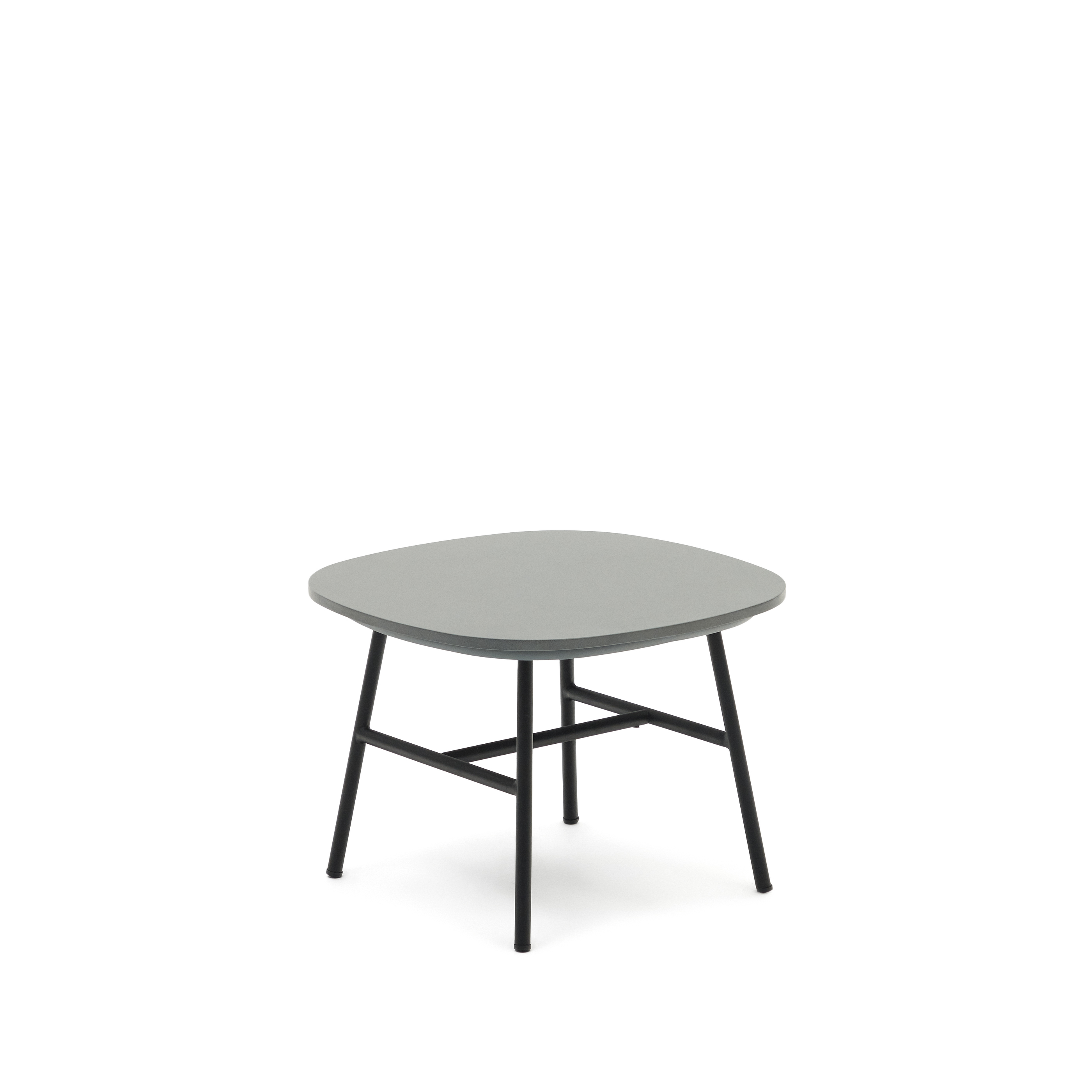 • Table basse avec plateau en acier traité pour une utilisation en extérieurs couverts.