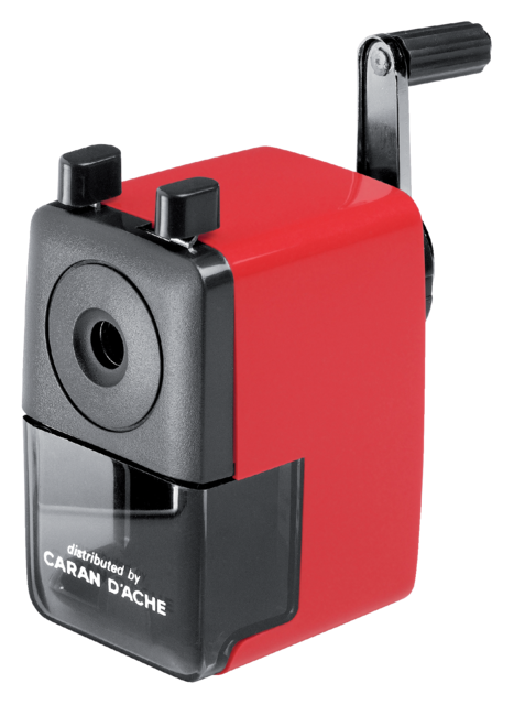 Detaillierte BeschreibungTaille-crayon Caran d’Ache Rode de table avec une pince pour crayons ronds, hexagonaux et triangulaires d’un diamètre de 4 à 8mm.