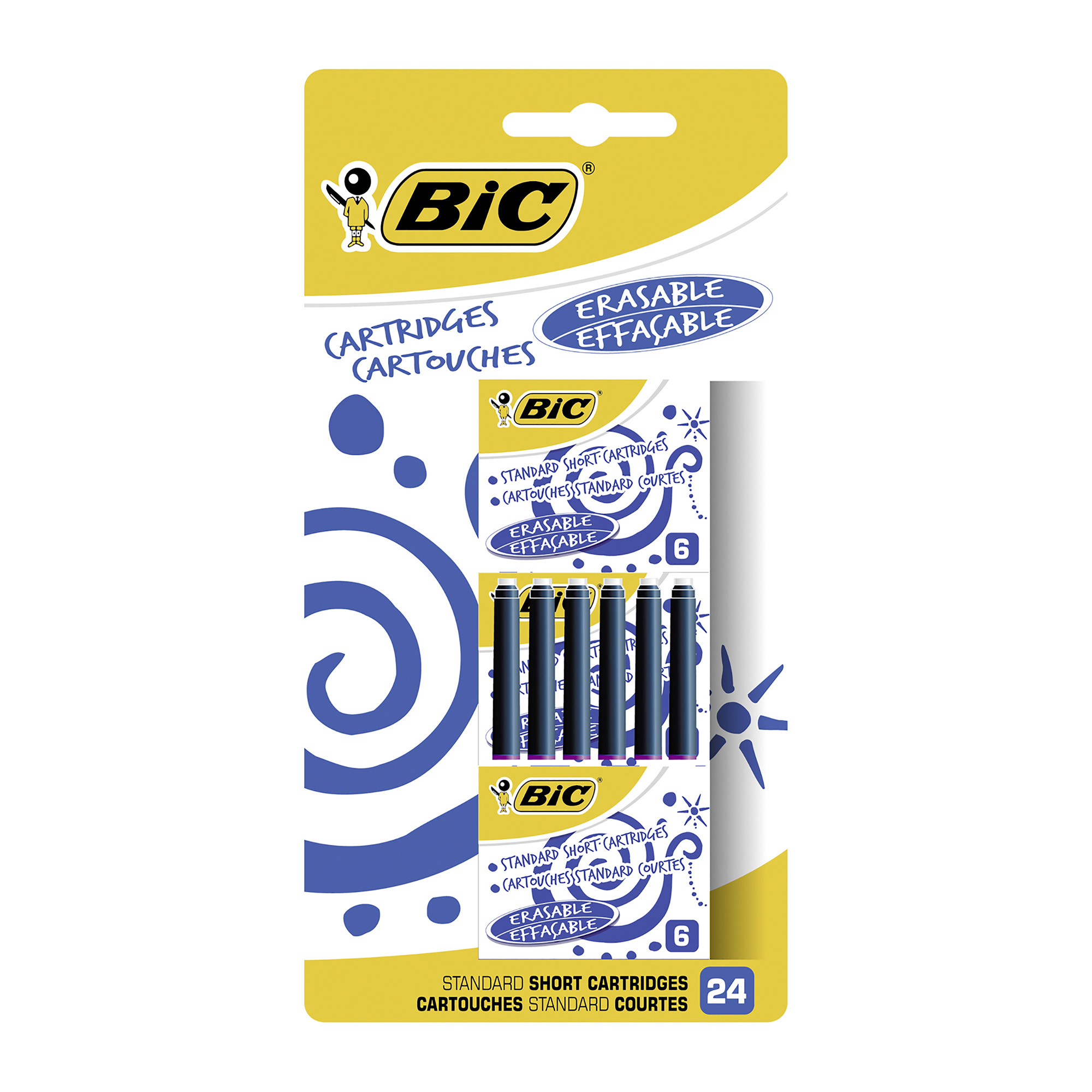 Trennen Sie sich nicht mehr von Ihrem Lieblingsfüllfeder oder Roller und füllen Sie ihn mit den universellen BIC-Tintenpatronen nach. Diese 24 kurzen Standardpatronen mit blauer Tinte sind mit den meisten Füllfederhaltern und Tintenroller mit Patrone kompatibel. Ideal für Hausaufgaben, Briefe schreiben oder Verträge unterzeichnen, verleihen diese universellen Patronen Ihrer Schrift einen eleganten und beherrschten Hauch.