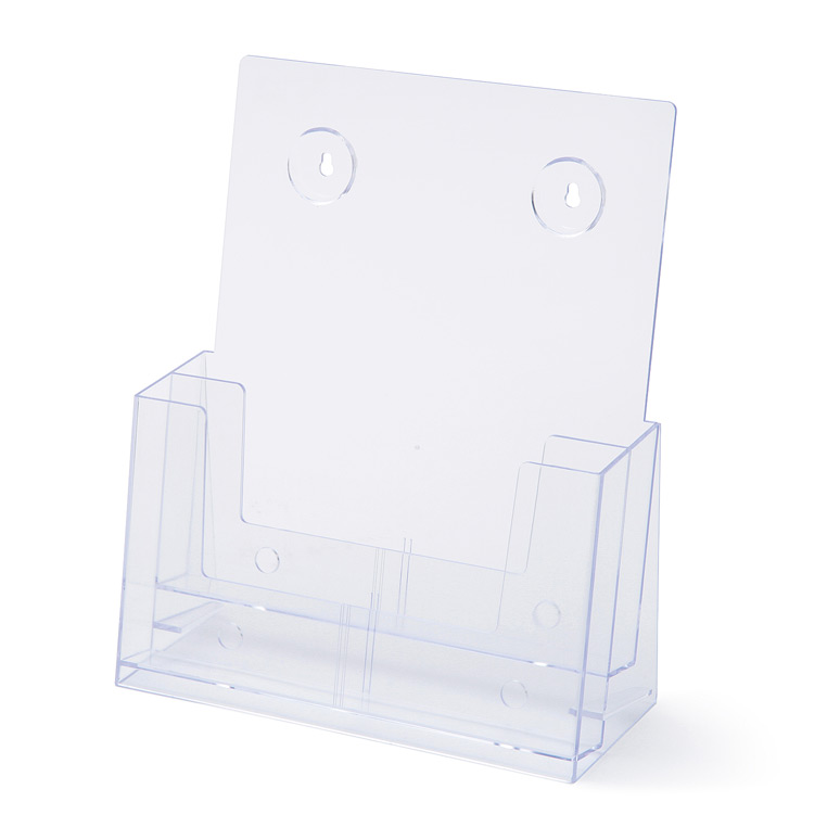 Mit dem Scritto®Prospekthalter Tisch/Wand A4 können Sie Ihre Flyer und Prospekte optimal präsentieren. Die 3,2 cm tiefe Tasche bietet ausreichend Platz für Ihre A4-Dokumente. Ob für die Tischaufstellung oder die Montage an der Wand, diese Prospekthalter sind vielseitig einsetzbar. Je nach Bedarf können Sie die Fachanzahl anpassen. Ideal geeignet für die Präsentation von Flyern oder Prospekten in Wartebereichen, an Rezeptionen, im Gastgewerbe oder bei Events und Messen.