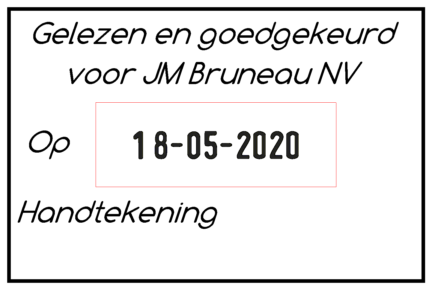 Detaillierte BeschreibungAbdruckgröße: 59 x 39 mm, max. 4 bis 6 Zeilen. Schrifthöhe Datum: 4 mm. Apparat Rot. Tinten in verschiedenen Farben