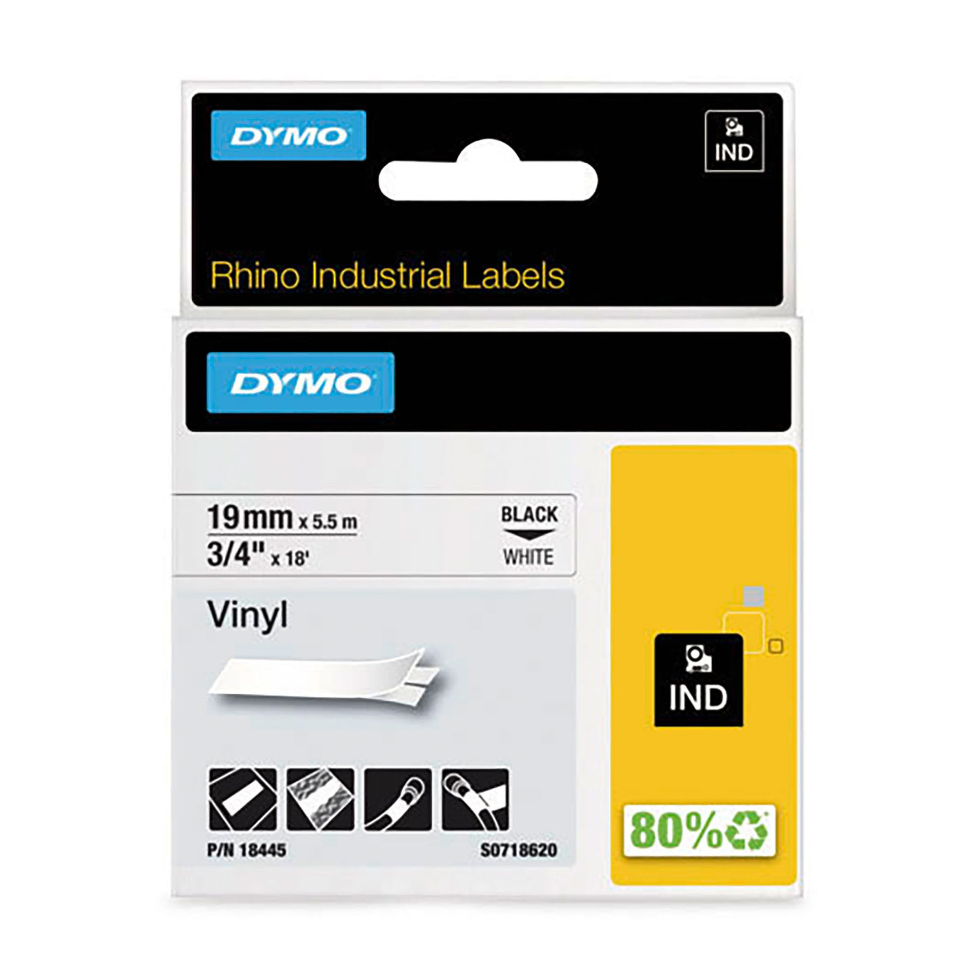 Für allgemeine Etikettierung oder in extremen Umständen (zwischen -18° und +120°). Beständig gegen Feuchtigkeit, chemische Produkte und UV-Strahlung. Für Innen und Außen. Für flache und grobe Oberflächen, Kabel und Drähte. Ul-Zertifikat und konform ROHS. Band: Breite 19 mm, Länge 5,5 m. Aus Vinyl. Weißer Hintergrund mit schwarzem Text. Vereinbar mit den folgenden Etikettendruckern: Dymo Rhino 4200, 5000, 5200 und 6000.
